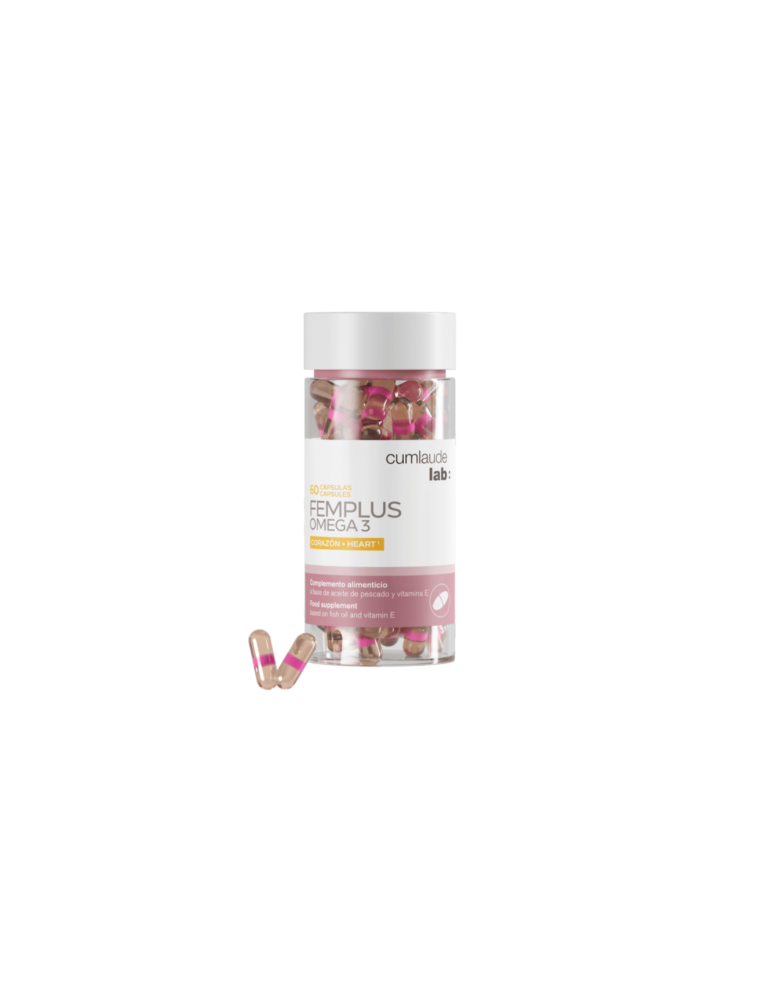 Cumlaude Femplus Omega 3 60 cápsulas es un complemento alimenticio con omega‑3 (EPA/DHA) y vitamina E, que contribuye al funcionamiento normal del corazón y protege las células frente al estrés oxidativo. Cápsulas gastro‑resistentes.