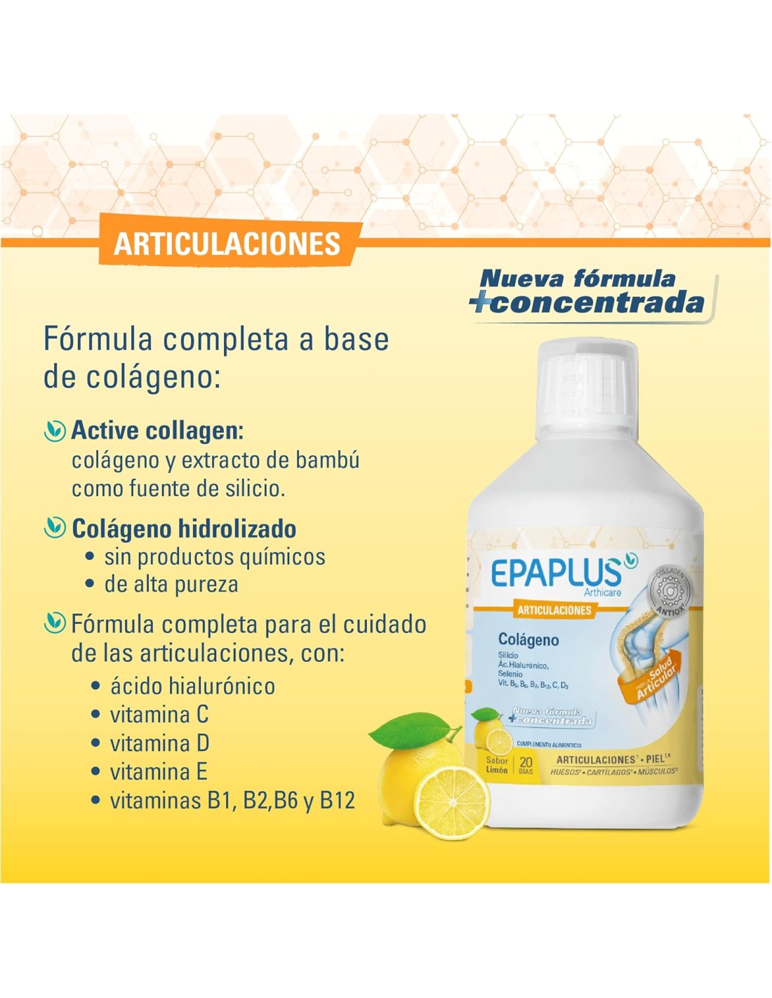 EPAPLUS COLAGENO LIQUIDO ARTICULACIONES SABOR LIMON 500 ML