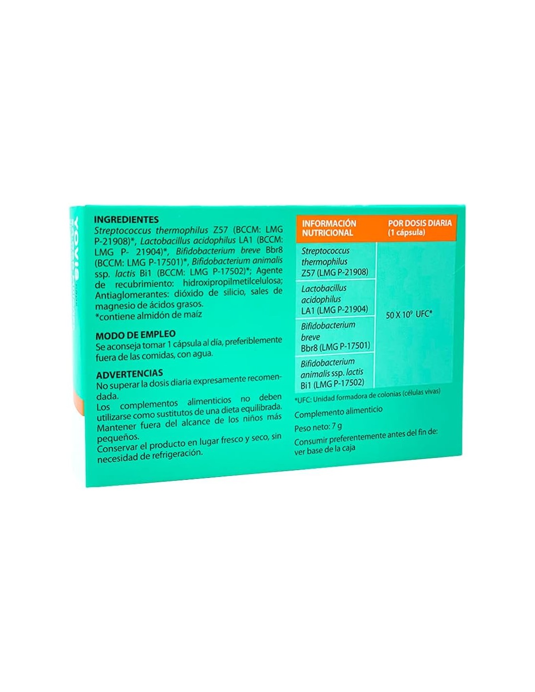 Yovis Probióticos cuenta con una elevada concentración de microorganismos vivos (50x10^9) por cada dosis diaria y esto hace que ayude a la flora bacteriana a reequilibrarse. Además, contiene una mezcla de bifidobacterias, estreptococos y lactobacilos que constituyen fermentos lácticos vivos liofilizados con una acción probiótica en una concentración de 50.000 millones de bacterias por dosis diaria.