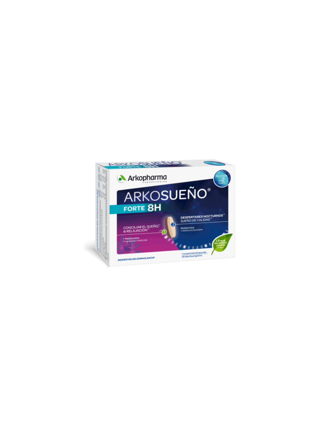 Arkosueño Forte 8h 30 comprimidos bicapa es el complemento alimenticio idóneo para aquellas personas con problemas para conciliar el sueño. Ayuda a evitar los despertares nocturnos sin dejar una sensación de somnolencia en el cuerpo al día siguiente, gracias a ingredientes como la amapola de california o la melatonina. Es precisamente la melatonina de su composición la que, a través de una doble liberación diferenciada en dos fases, la que permite conciliar el sueño y evitar los despertares nocturnos. Sin lactosa, apto para celiacos y para veganos.
